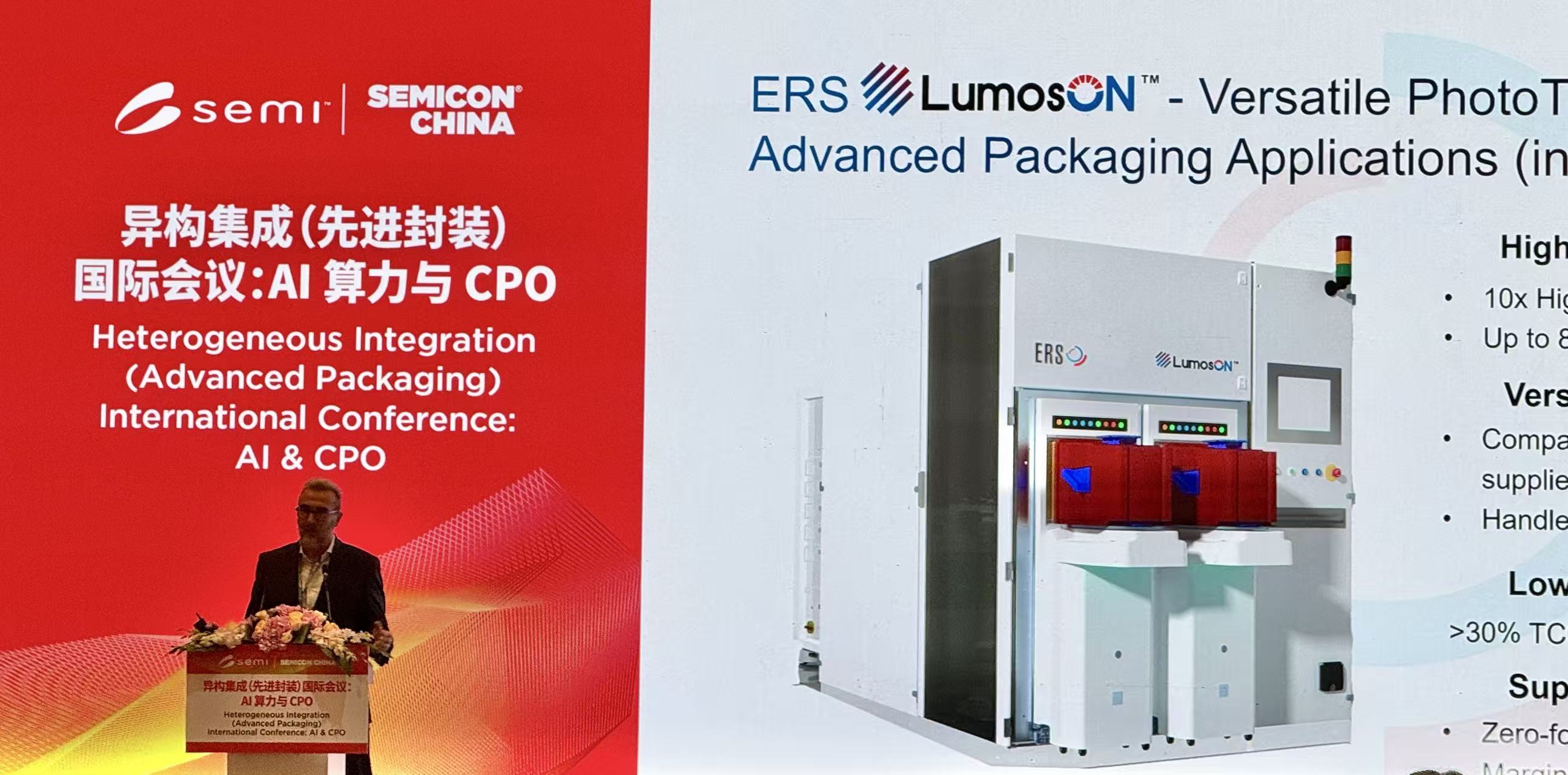 展会前夕,首席执行官Laurent Giai-Miniet于3月24日出席了由SEMI中国主办的“异构集成(先进封装)国际会议:AI & CPO”,并发表了主题演讲。在主题演讲中,他重点强调ERS为AI和HPC晶圆测试、3D堆叠先进封装提供量身定制的、旨在最大化良率的解决方案,其中包括CoWoS、EMIB、HBM等3D堆叠技术,以及 GPU和CPU等。
