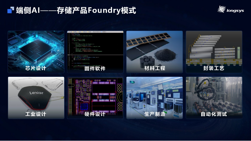 针对端侧AI存储多样化、定制化需求,江波龙以构建起端侧AI存储全链路定制服务Foundry模式,突破传统存储单一升级瓶颈,实现全方位综合提升。该模式覆盖芯片设计、硬件设计、固件软件、封装工艺、工业设计、自动化测试、材料工程、生产制造等全产业链核心环节,通过各环节深度协同、技术整合与能力开放,实现存储产品从设计到交付的全链路定制化与高效化,为端侧AI存储产业发展提供全新模式参考,也是江波龙布局端侧AI存储的核心策略。
