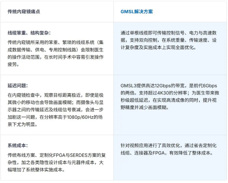 此次合作的核心在于采用ADI先进的GMSL3串行链路技术,该技术最初应用于汽车领域,现被创新性地引入医疗场景。GMSL3技术有效解决了传统内窥镜架构中的多项难题:通过更高分辨率成像实现超清视界,显著降低传输延迟,简化布线设计,同时减少设备发热和体积,从而降低系统制造成本。